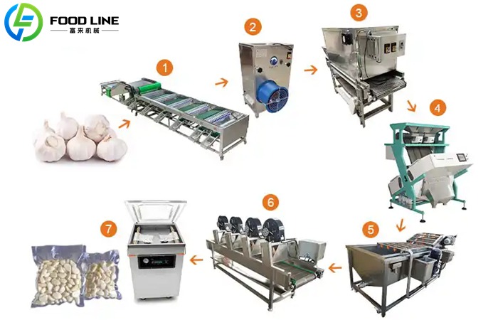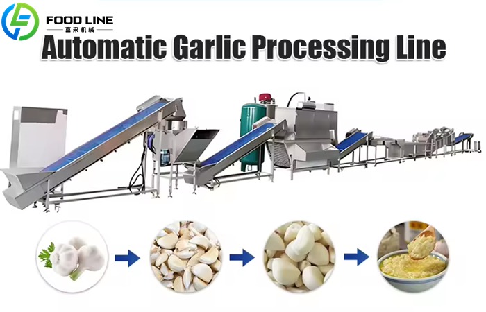 Foodline Machinery, a professional manufacturer of food processing equipment, provides a full line of garlic processing machines—including garlic peeling machines, garlic grinding machines, garlic slicers, garlic paste machines, garlic packing machines, and even complete garlic production lines.