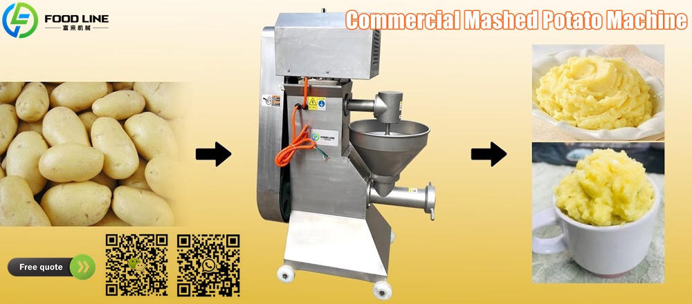 An industrial mashed potato machine is a piece of commercial food-processing equipment designed to turn large batches of cooked potatoes into smooth, fluffy mashed potatoes — quickly and consistently.