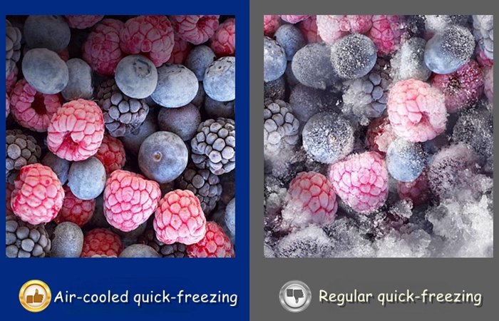 It reduces the product’s core temperature to below -18°C/-45°C/-60°C/-80°C within 30 minutes, allowing food to pass rapidly through the 0°C to -5°C ice crystal formation zone.