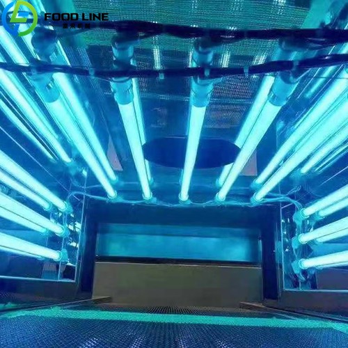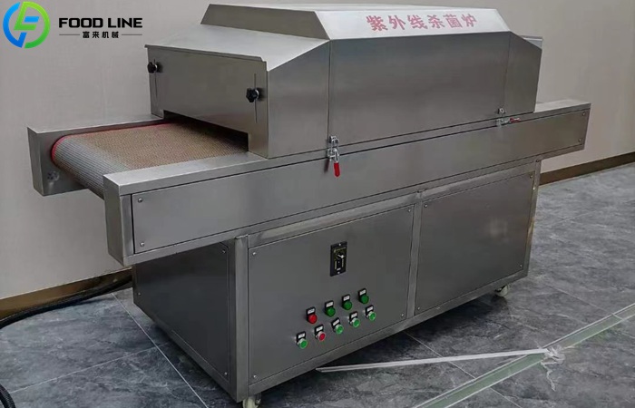 The UV food sterilizer (also known as an ultraviolet sterilization machine) uses shortwave UV-C light (200–280 nm) to destroy bacteria, viruses, and molds on food surfaces and packaging materials.